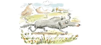 El llop gris fa una becaina quan tot d’una, apareix una mosca: