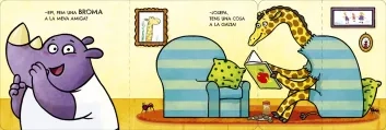 En Jan vol fer una broma a la seva amiga girafa. Què hi té, a la galta? Desplega les pàgines i descobreix-ho!