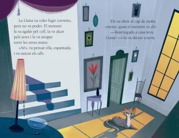 La Lluna era una gata que no feia altra cosa que jugar. Fins que va aparèixer el monstre de les orelles petites i se la va endur. Qui deu ser aquest ésser estrany que camina sobre dues potes?